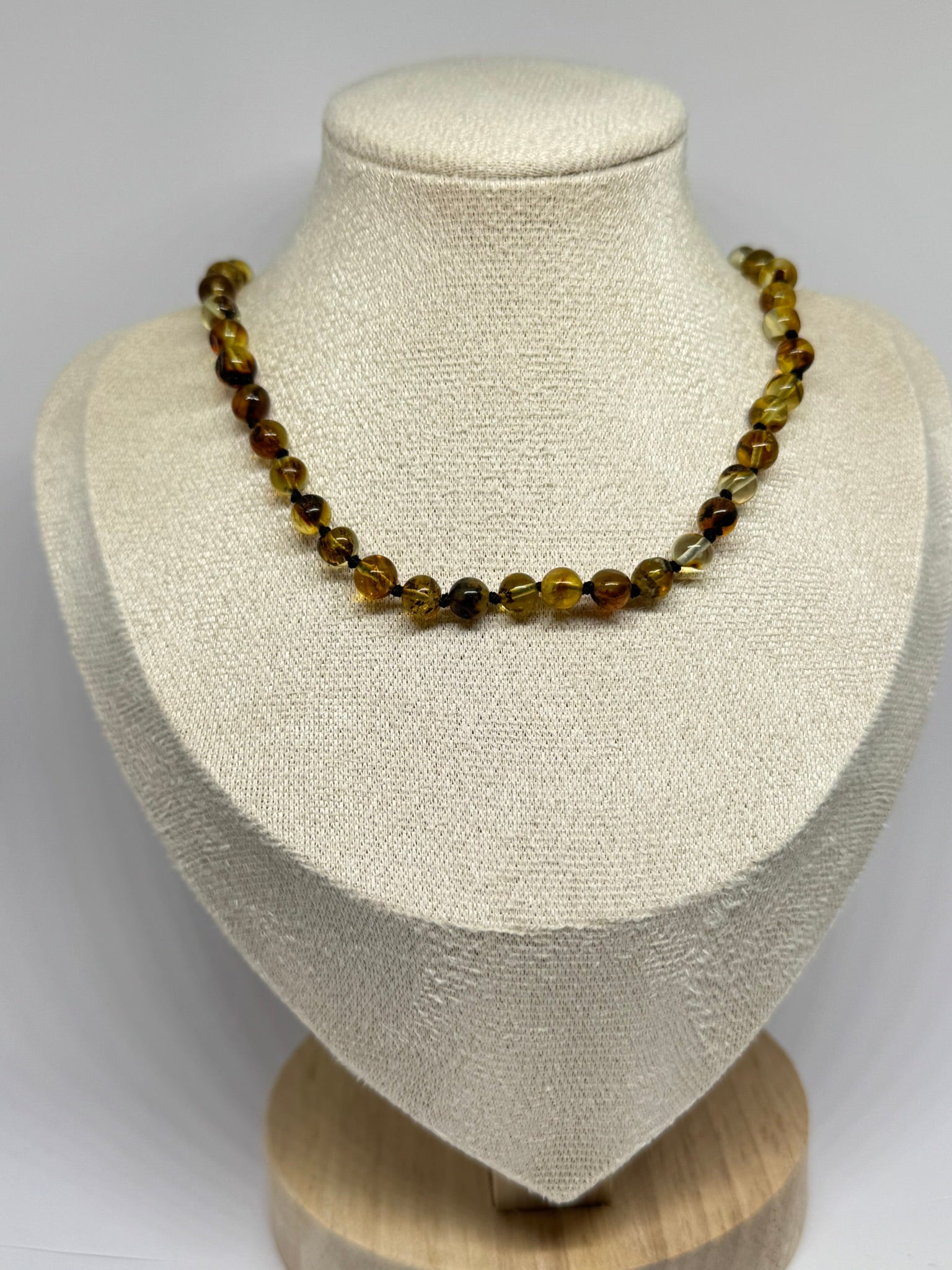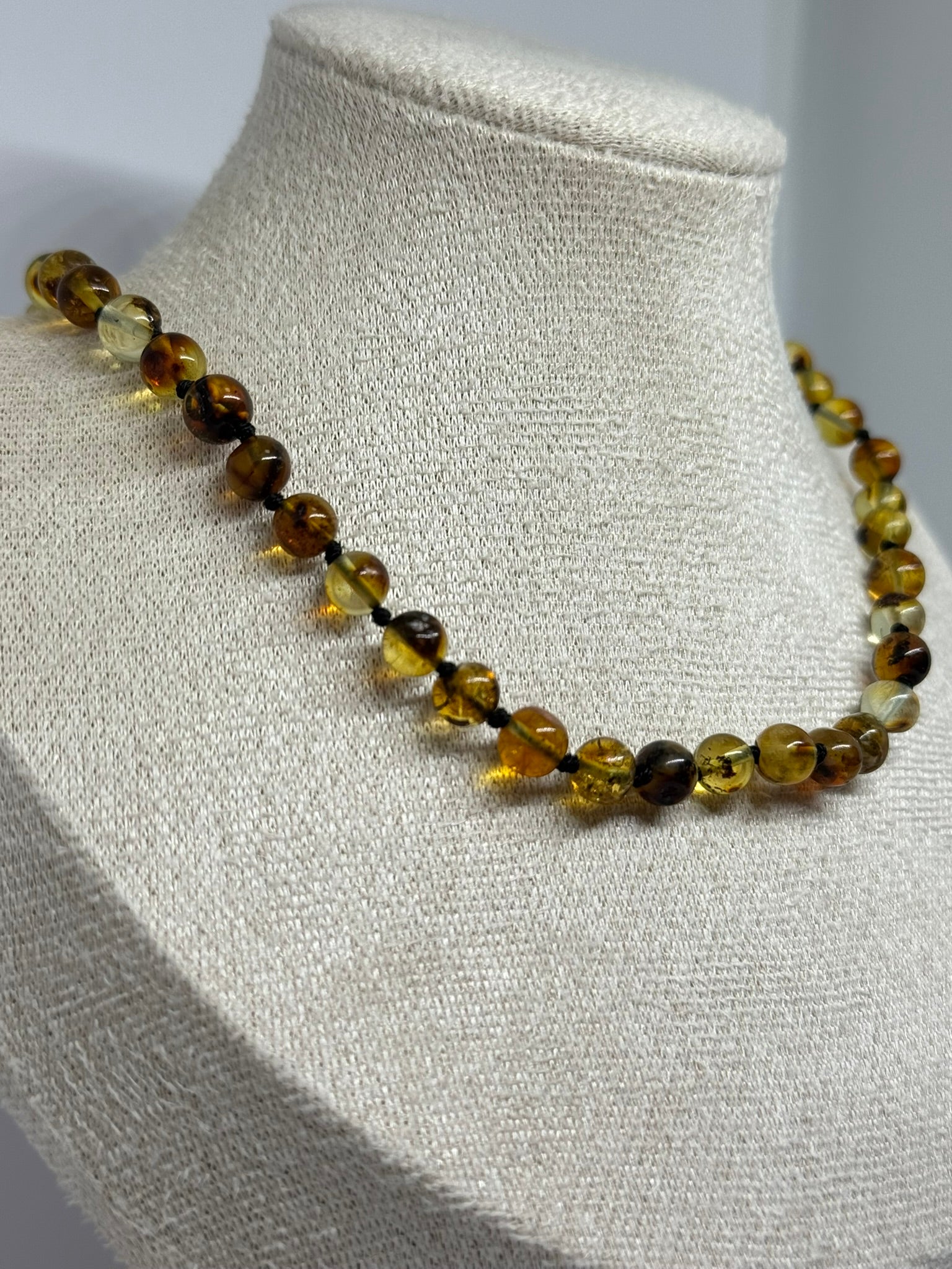 El yapımı kehribar bebek kolyesi, güvenli tokalı.