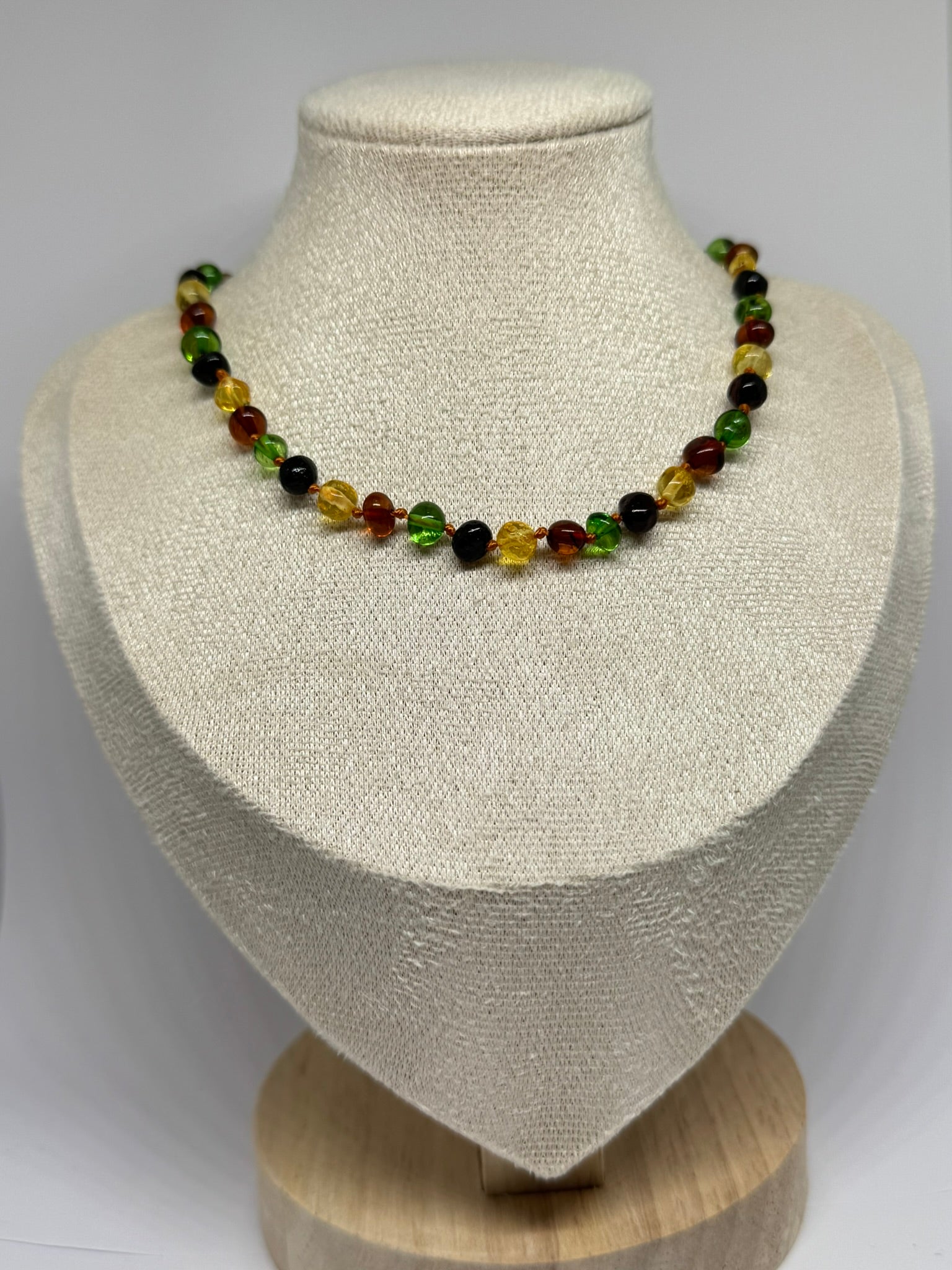El yapımı kehribar bebek kolyesi, güvenli tokalı.