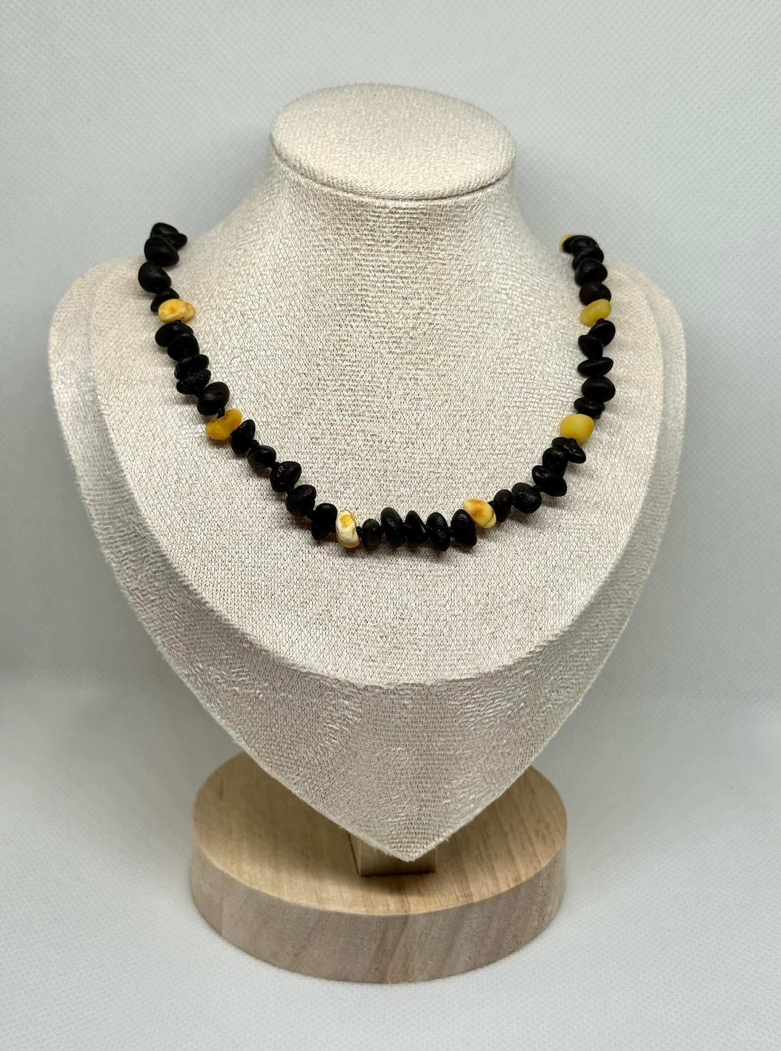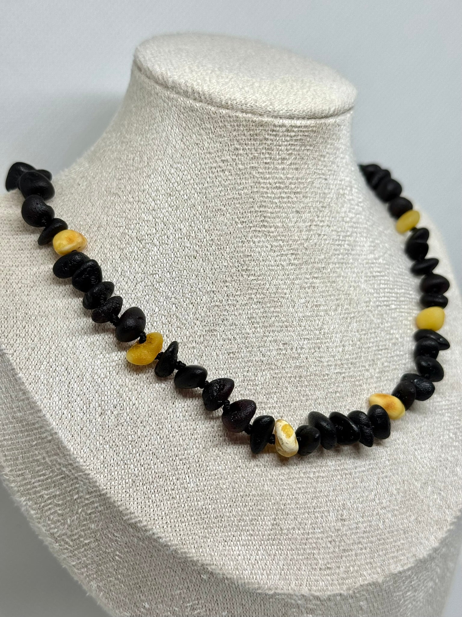 Ham Kehribar Kolye - Siyah ve Tereyağı (46 cm)